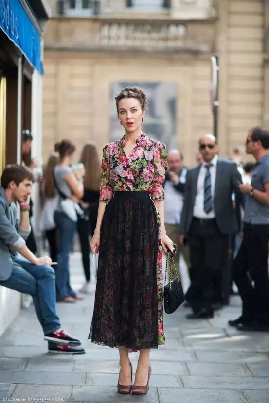 或者选择黑底色的款,稳重的底色会帮助你吸走一部分花色的注意力。
