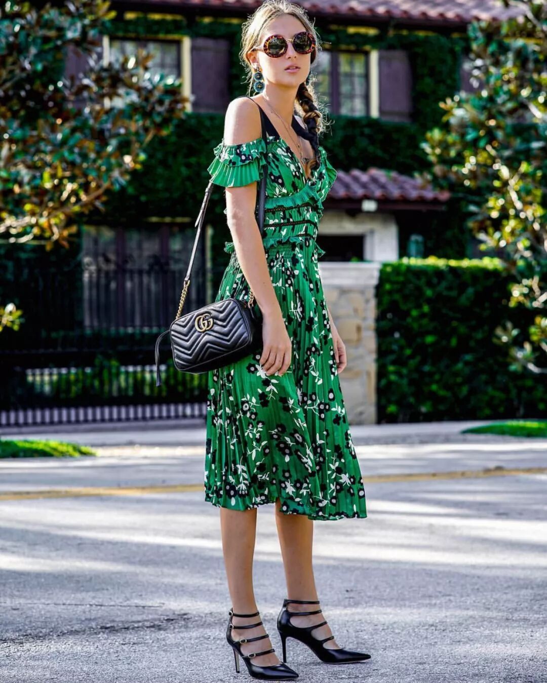 整体不超过三种颜色的印花裙,是我们可以轻松驾驭的样式,对于一般的妹子都是比较友好的。