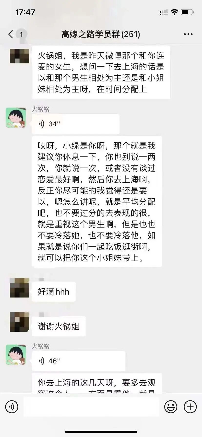下单就会拉入火锅姐和老李校长的超级无敌的微信群,这里给大家分享一下课程聊天记录。