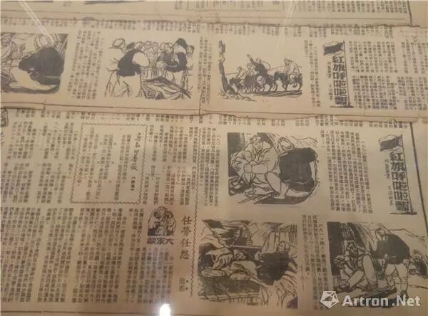 ▲王琦先生连环木刻版画作品:王琦先生编画《红旗呼拉拉飘》(1950年),连载于中国发行时间最长的中文报纸之一《大公报》,连环画共计81幅图。