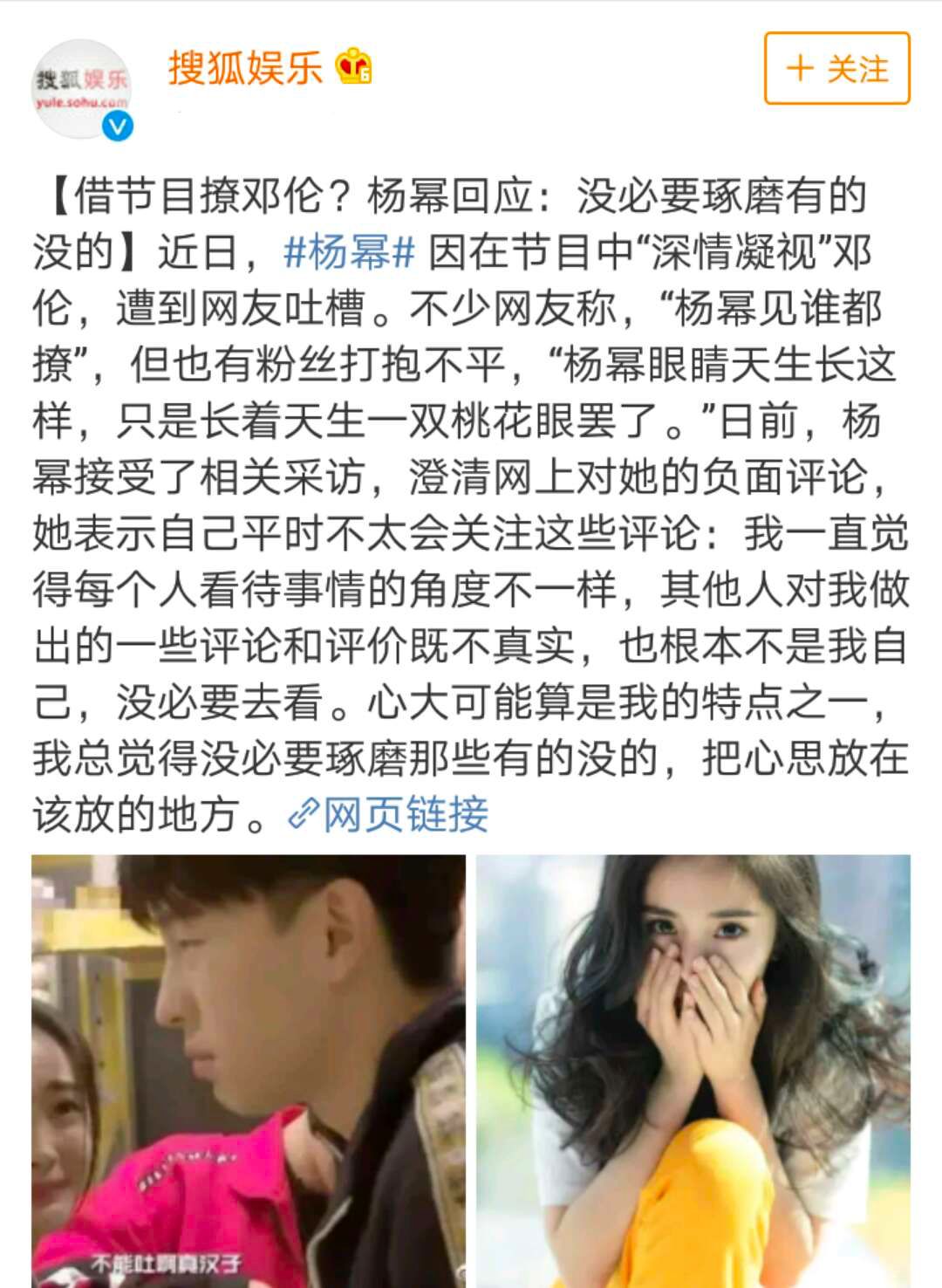 有粉丝站出来解释,说杨幂的眼神本来就属于桃花眼,哪怕看起来宠物都是这种深情脉脉的眼神。至于称呼,好朋友之间这样称呼对方是很正常的。