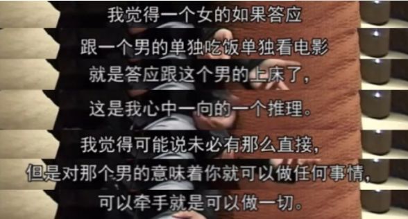 一个女的如果答应跟一个男的单独吃饭、单独看电影,就是答应跟这个男的上床了,这是我心中一向的一个推理。