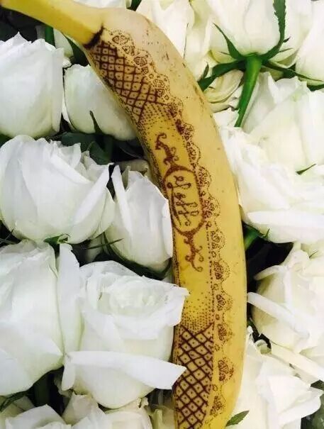 黄渤在微博晒出了自己在香蕉作画的图片,并写道:“香蕉牙签插画。材质:香蕉、工具:牙签或针 特点:一会就变色,缺点:观赏保存期只有一天,抛砖引玉,欢迎大家继续!”从其晒出的图片中,可以看到黄渤用牙签在香蕉上画的眼睛等图案,全都有模有样,画工精良。