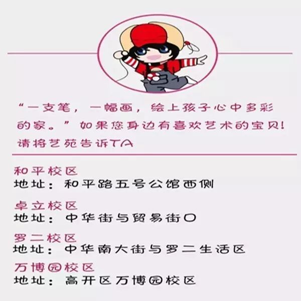 “艺苑美术专业学校”成立于1994年6月,经市委批准成立的一所正规美术专业培训学校。办学22年来向中央美院、中央美院附中、清华美院、北京电影学院、天津美院、天津美院附中、西安美院、湖北美院、西安科技大学、河北师大等全国重点院校及市内重点高中特长班,输送了大量的美术人才。深受家长及社会的好评。