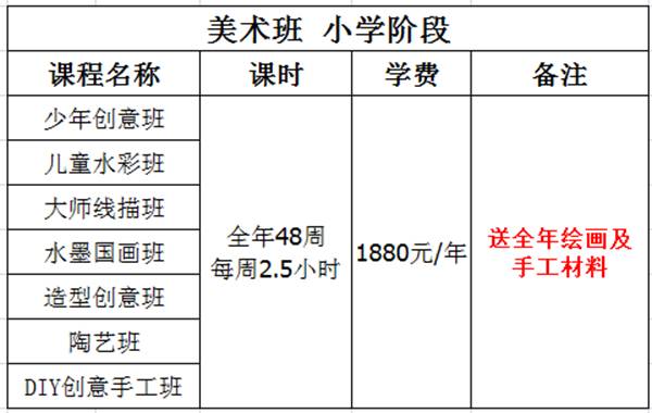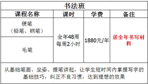 即日起,凡现场报名缴费的学生,赠送价值150元的书法课3节、陶艺课3节(任选其一);