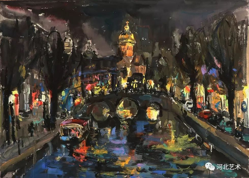 《阿姆斯特丹的夜》 80cmx120cm 水粉