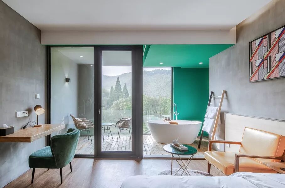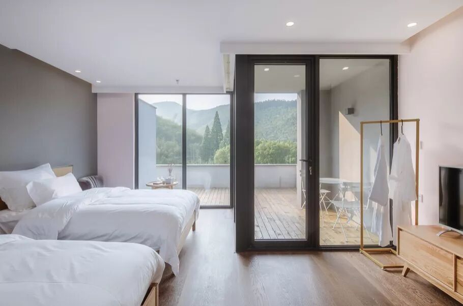 粉色的肆号客房,是为了满足羊羊的少女心;柒号客房里有一只小木马,是幻想以后他们孩子的玩耍空间;还有薄荷绿的叁号客房、墨绿的陆号客房,是无处不在的新鲜感,生机盎然。