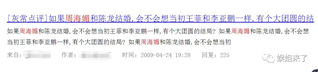 但是后来,也不了了之,陈龙娶妻,周海媚依然单身。但是天涯上的网友还是“热心”发帖: