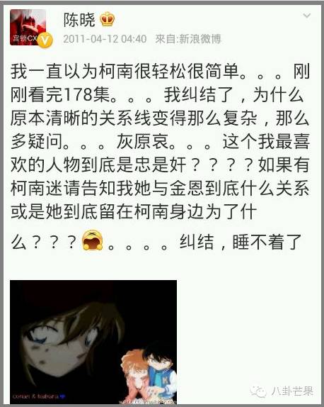 通过这场婚礼,大家发现了陈晓的中二boy属性。原来他是《名侦探柯南》的骨灰粉,还超级喜欢里面的灰原哀!嗯~就是这个酷酷的女孩纸~