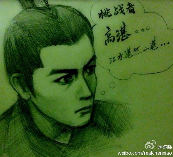 所以很容易想象为何陈妍希会喜欢陈晓吧!多才多艺,中二得有点可爱,而且关键还帅啊,尤其是演古装的时候,很有古韵: