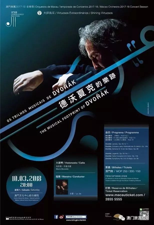 意大利著名演奏家马里奥·布鲁奈罗将与澳门乐团携手带来《德沃夏克的足迹》音乐会,由乐团音乐总监吕嘉执棒,在澳门文化中心综合剧院上演。