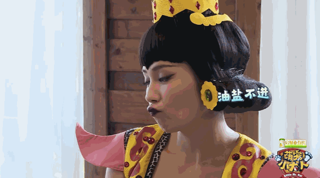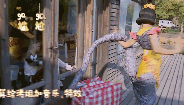 刘涛乔装打扮成了“蛇精”,一出现就把单纯的孩子们吓了一跳。