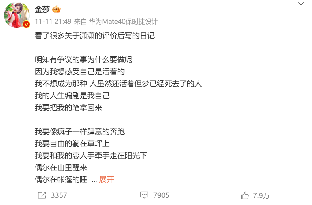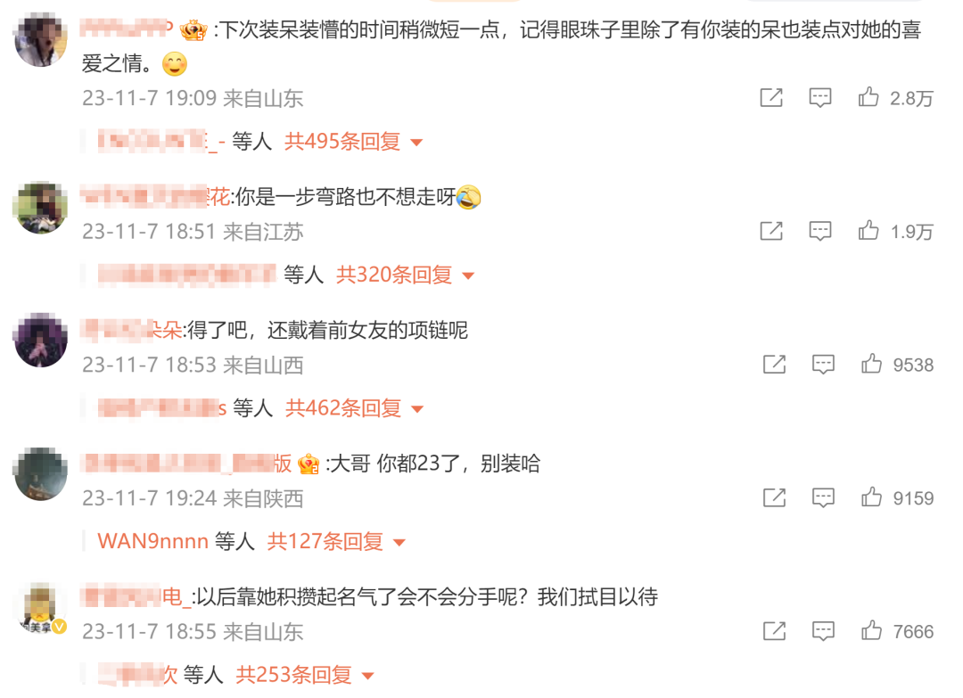 但更多声音在揭穿小男友的虚伪,说他“装天真”,劝金莎快跑。
