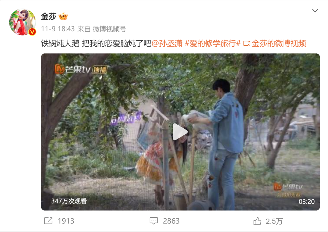 最近芒果一档综艺开播,金莎和她的小男友赚足了“关注”。