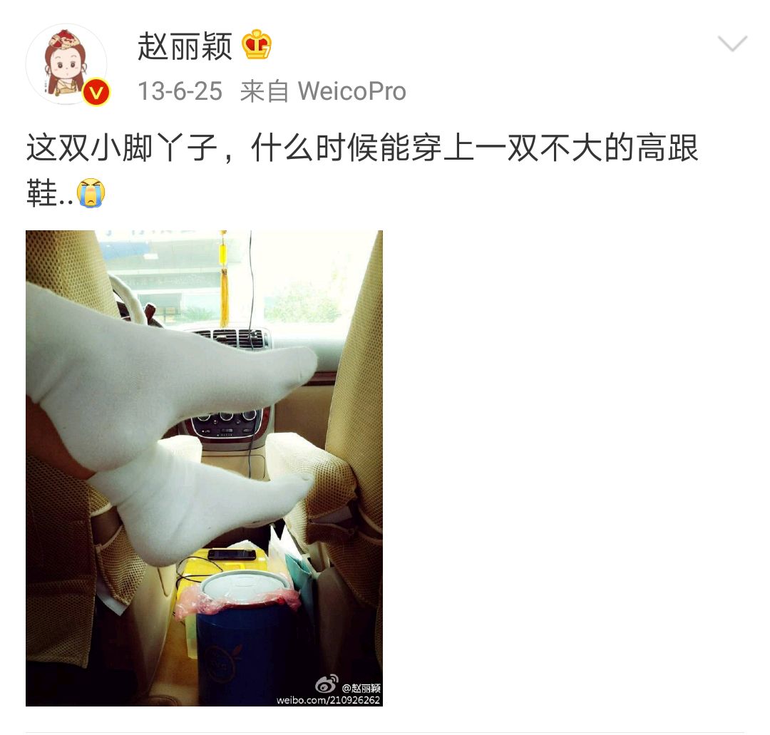 就连赵丽颖本人自己都在微博上面抱怨,自己这脚,啥时候才能穿上一双不大的高跟鞋。因为34码属于童鞋,而童鞋没有高跟鞋。