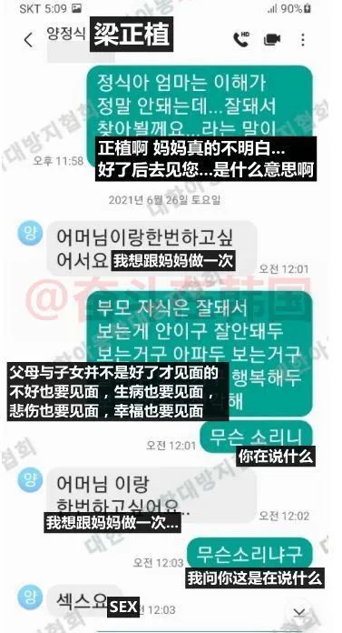 今年6月,韩国一位中年女性因为迟迟联系不到自己的女儿和外孙女,就给女儿现任男友梁某发去短信。