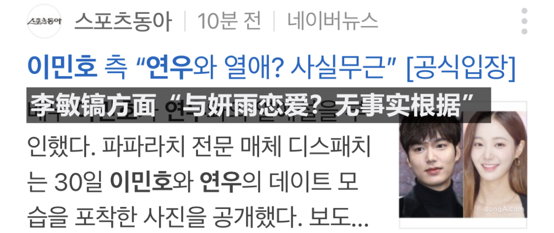 李敏镐那边已经直接否认了,说也不是约会,只是认识,那天晚上不只是他们两个人约会,都是伪造的,还有其他熟人在场。