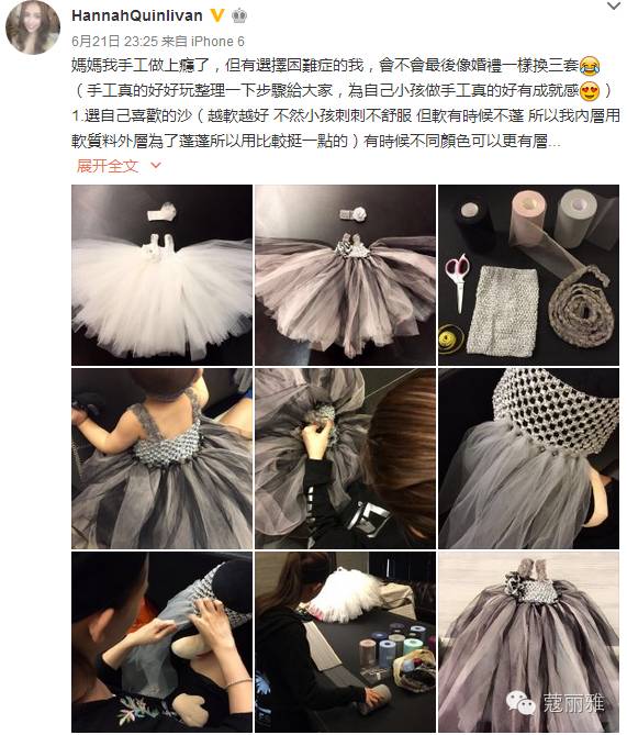 昆凌在微博写道:“妈妈我手工做上瘾了,但有选择困难症的我,会不会最后像婚礼一样换三套?手工真的好好玩,整理一下步骤给大家,为自己小孩做手工真的好有成就感。”
