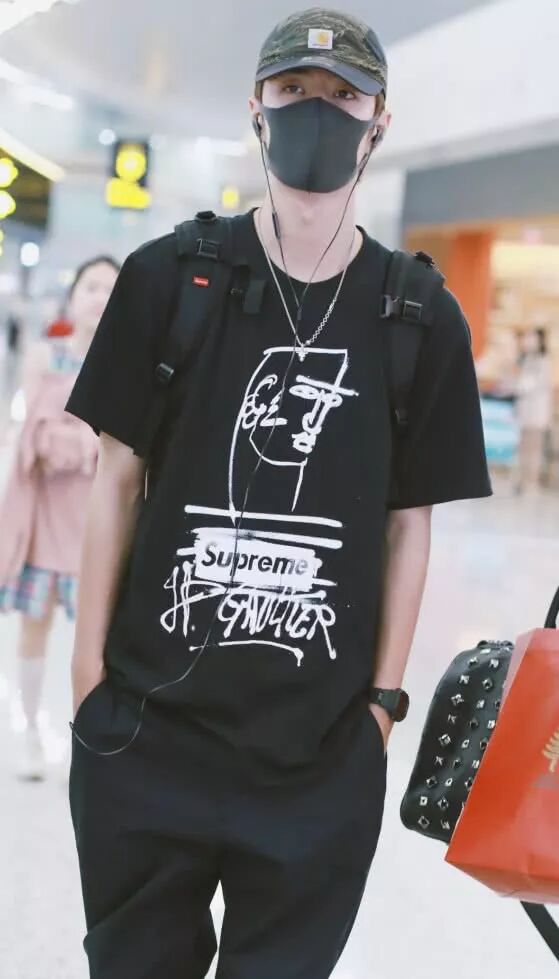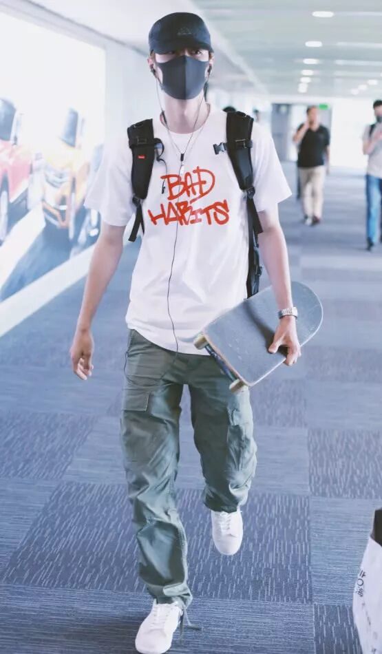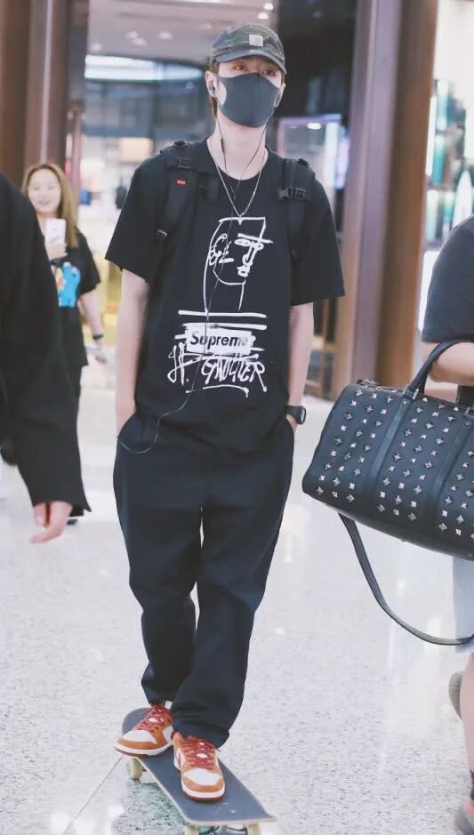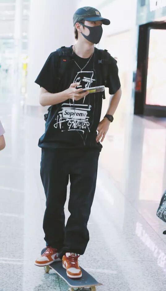 王一博这次的机场照:一身黑衣+AJ鞋,简约而时髦,但小个子穿不了。我们可以清楚地看到,他穿着一件黑色T恤+黑色休闲裤,低调而不失魅力。衣服和裤子都是宽松的版型,显得身材比较纤瘦。