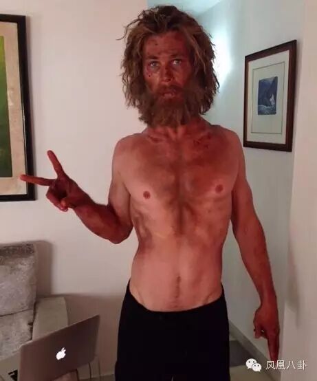 “锤哥”克里斯·海姆斯沃斯为了在新戏《海洋深处》(暂译 In the Heart of the Sea)中,扮演一个在海上漂流的19世纪的水手,也生生从一个肌肉猛男,瘦成了竹竿: