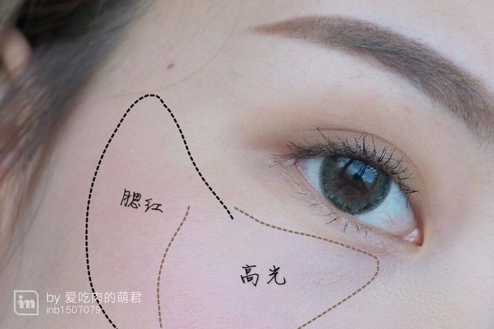 眼头处注意提亮,轻轻一点就会有日式闪亮大眼的感觉