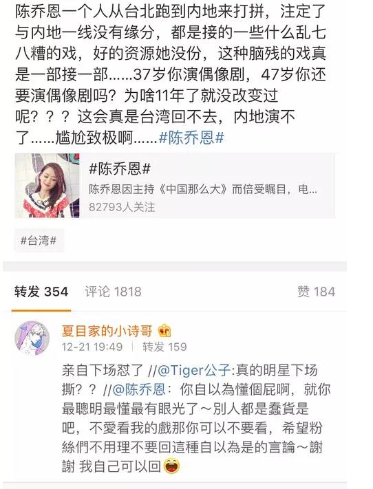 其实粉丝也是蛮真爱了,话糙理不糙,也是在心疼陈乔恩资源不好,希望她能在这个演技接一下更能体验她演技的作品,也是为了爱豆操碎了心!