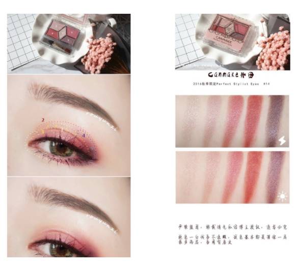 桃花妆最讲究的莫过于眼妆,这两款眼影都是嫣红色带偏光闪,上眼非常亮丽~