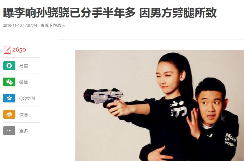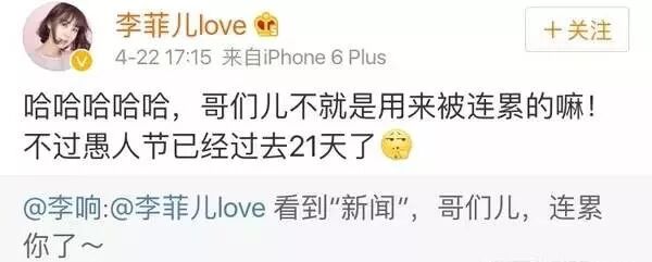 然而也有报道称李响疑似出轨李菲儿。李响当时还自嘲了一番。