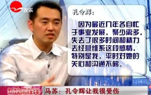 说到分手的原因,孔令辉表示是两人聚少离多,自己更是沟通不够,缺少对马苏的关心。
