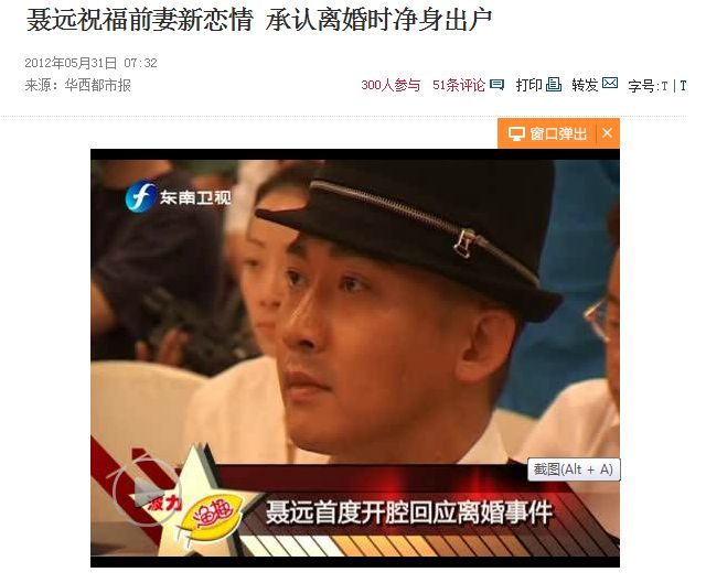 有报道称,二人是和平分手,聂远也承认当时是净身出户。