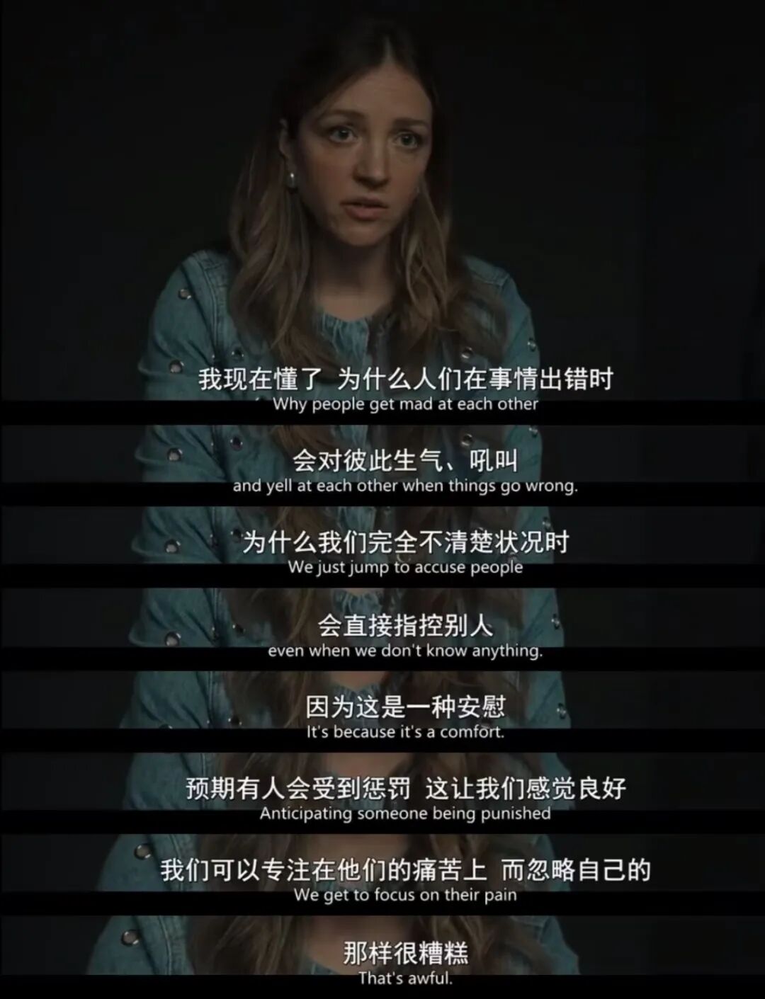 一些痛苦距离我们太过遥远,我们看不见,更碰不着。所以,相信存在一个邪恶但有序的阴谋集团在幕后控制一切,反而比接受世界的随机与混沌更让人“安心”。愚昧也好,清明也罢,我们需要它看得见,需要它会发生,哪怕它只是隐藏在近距离的生活之中,因为这样它才能接住我们脆弱的情绪。
