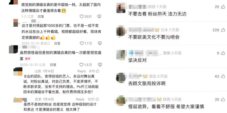 (演唱会视频下观点截然不同的评论)