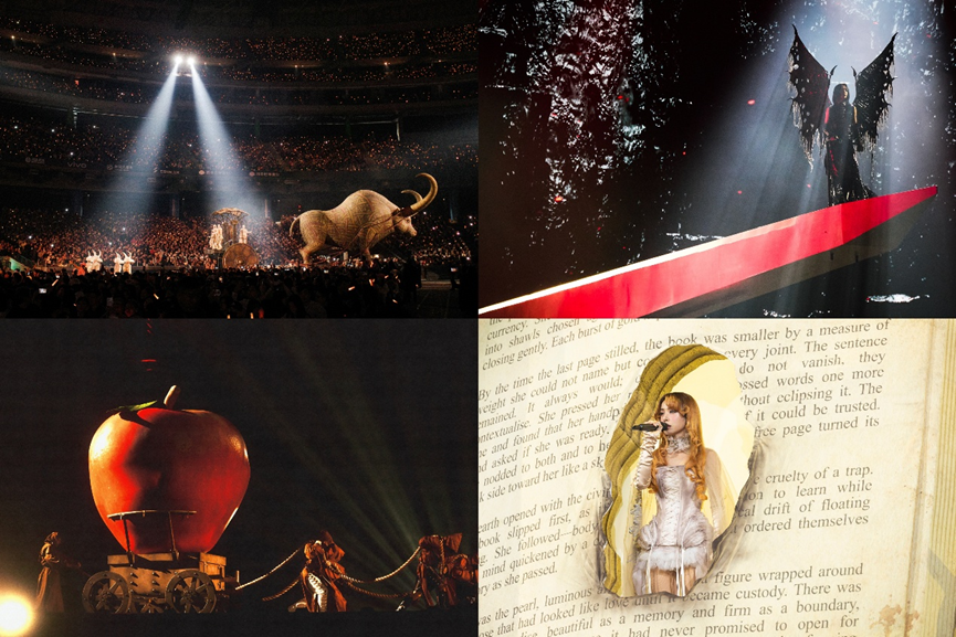 相对应的,演唱会设置了三座沉浸互动式的“人间乐园”舞台,采用寓言叙述的模式推进演出流程,分为五个独立又连贯的篇章,造型、舞美、选曲随之变化,构成完整的故事线。