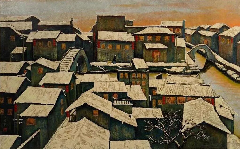 “如意杯”金奖作品《霞映瑞雪暖江南》,便是根据黄英在江南游历时经历的一场雪,有感而发的。“下了一场雪,并不会让人很冷的感觉,而是有一种归乡的温暖感,所以我用暖色调来表现天空。画面的整个氛围也不是那种冷冰冰的,是有一种荣归故里的感觉在里面。”