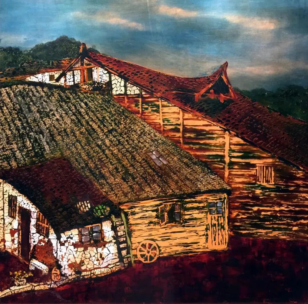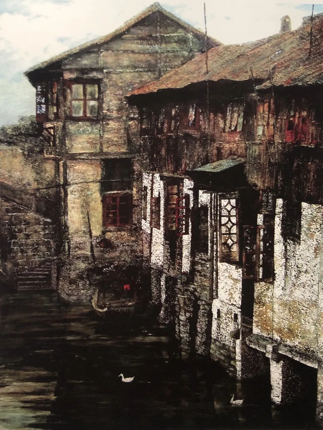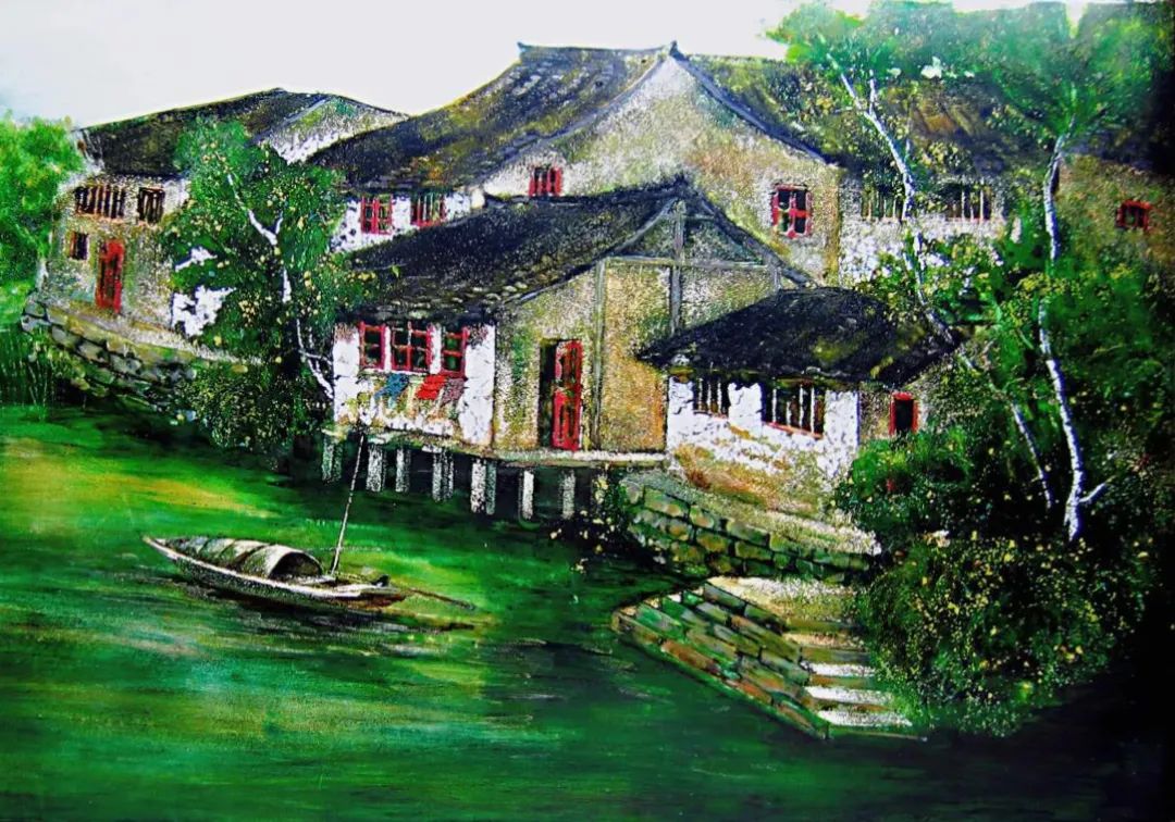 也许是对父亲的思念,黄英在原本没有人物的作品中加入了一位老者的形象。这个加入,瞬间点燃了画面中那浓浓的乡愁滋味。