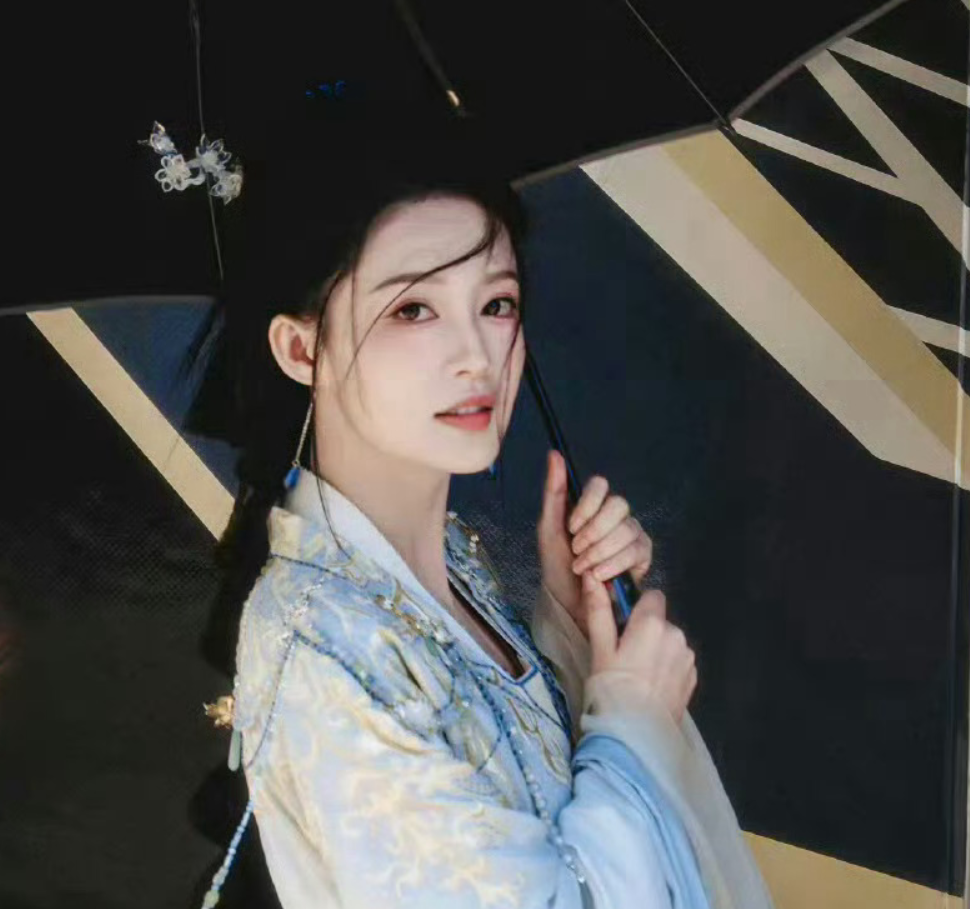 哪怕是素净的妆容和浅色汉服这样平平无奇的搭配,小姐姐的眼神也能穿透人心。