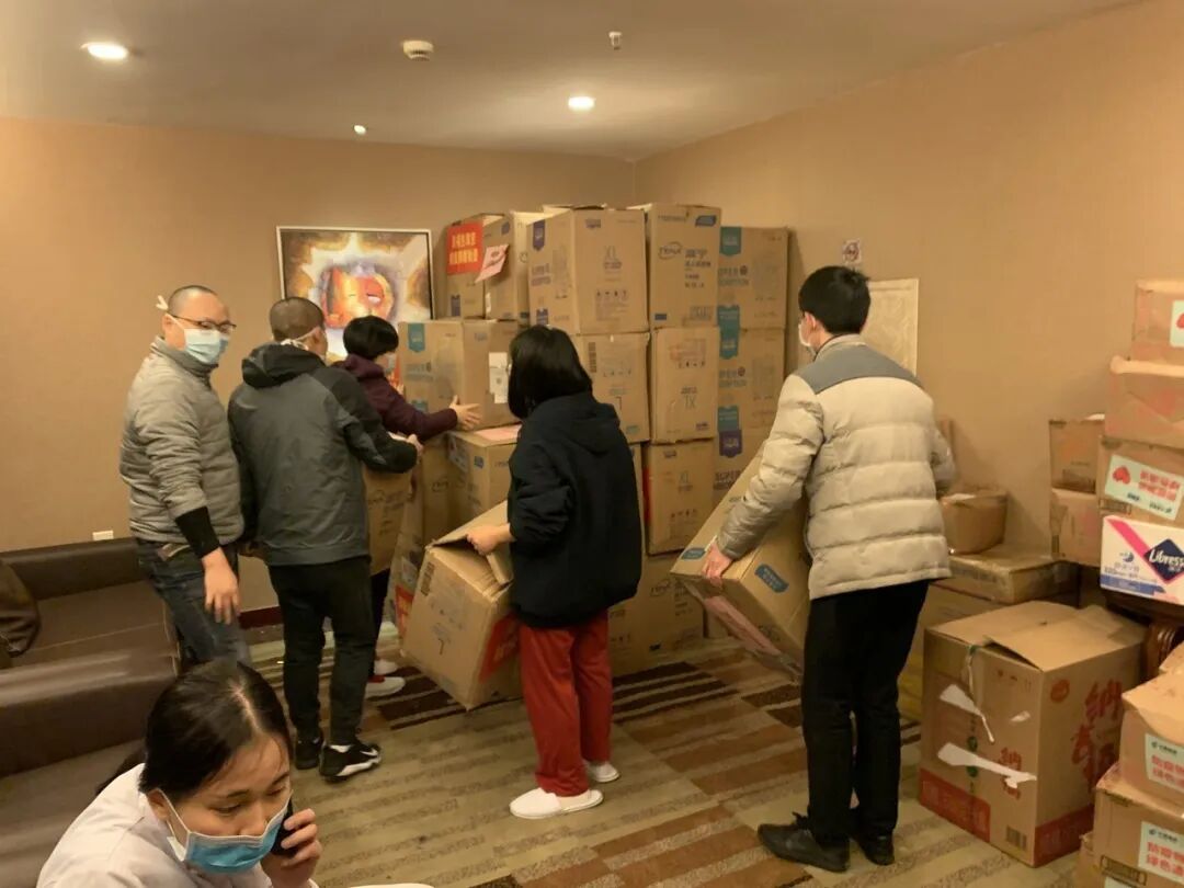 十一点多,经过两个小时的车程,我们到达新驻地——武汉市洪山区君宜王朝大饭店。等大家整理好自己的行李后,悦琳姐姐就收到通知要我们先行前往日海方舱医院,进行院感知识培训。结束回到宿舍,已经是下午1时许,饭菜早就凉了,我用开水泡了下,随意扒拉了几口。晚上 6时30分,衢州医疗队队长柴东剑在微信工作群里发出通知,到楼下搬物资。物资是衢州商会捐赠的,足足一大卡车,除了10几箱湿巾外,其余的都是尿不湿。说实在的,穿尿不湿上班还真不习惯,上班前不吃饭,不喝水,一个班6个小时坚持下来,感觉能喝掉一缸水。我们都不时收到来自衢州的各类爱心捐赠,还有我们医院各位领导同事想尽各种办法给我们万里送温暖和物资。一瓶瓶消毒水、一个个口罩……都让我感恩着。虽然我们离家千里,可还是深深感受到父老乡亲们无时无刻的牵挂与关爱。家中的妈妈,每天都在担忧着我,知道我无法入眠,水土不服,天天流鼻血,给我寄来了蜂蜜、葛粉、人参粉、红枣、枸杞……各种大大小小、一个个瓶子里全都装满妈妈的爱和担心。我们工作时间长,常常三餐并做两餐,于是,妈妈就每天发语音给我:不喜欢的菜,可以少吃点,但是饭一定要多吃,要慢慢吃,在嘴里多嚼下,把饭吃出甜味来。每天晩上又提醒我:睡前泡泡脚,喝杯牛奶……