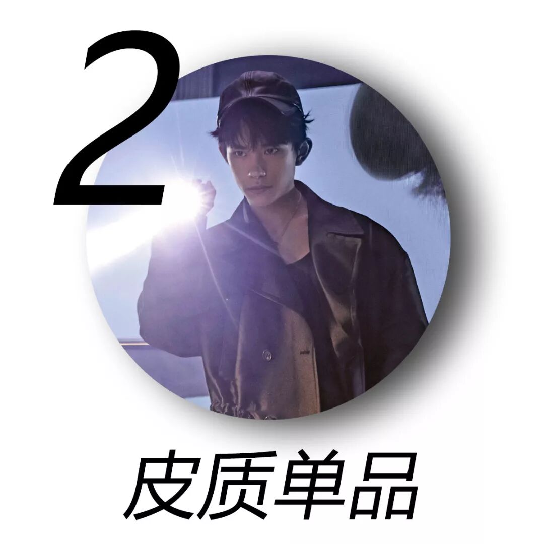 在这组大片之中皮质单品的存在感也特别的强,See四字弟弟的长款皮风衣超级有型鸭▼