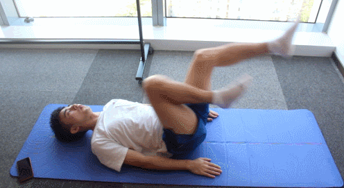 上面提到的蚌式开合仰卧也可以做,仰卧双脚脚掌相对,然后双腿自然上下,注意感受腰腹和腿部发力的感觉。