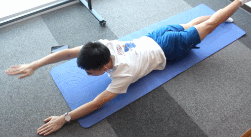 俯身躺在床上,抬胸挺直背部,双手往前伸,然后按照左手右腿、右手左腿的形式交替往上抬。