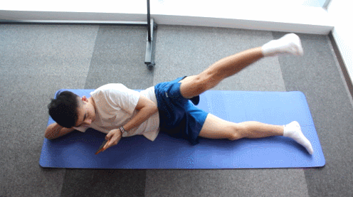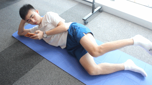 将手机放在一边侧躺,用手臂支撑头部,双腿弯曲90度重合。上腿向上开合,达到顶部时稍作停留,像蚌一样开合,但双脚自始至终都要保持接触。左右腿交替这个动作,每只腿保持30秒。