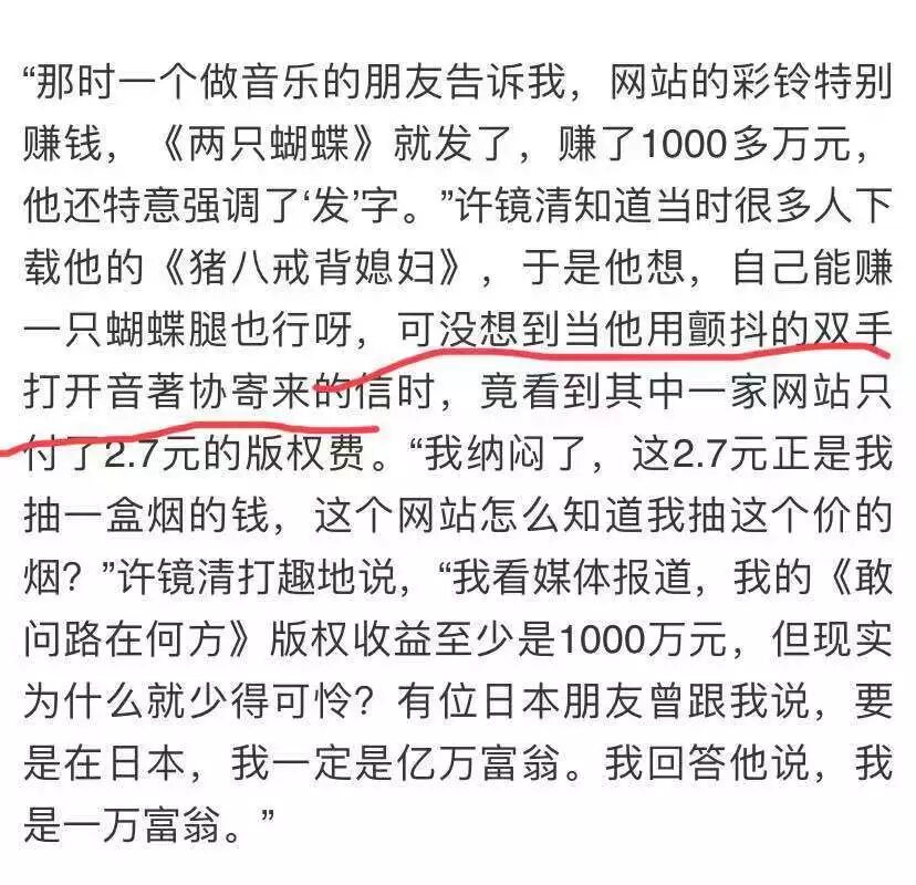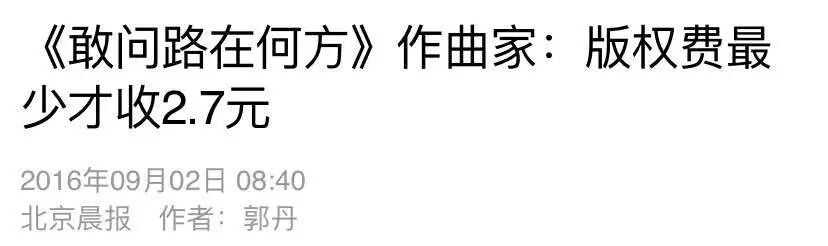 而从网上查到的新闻来看,在2016年许镜清还从音著协拿到过版权费,也就是说《敢问路在何方》这首歌很有可能现在依然是授权给了音著协的。