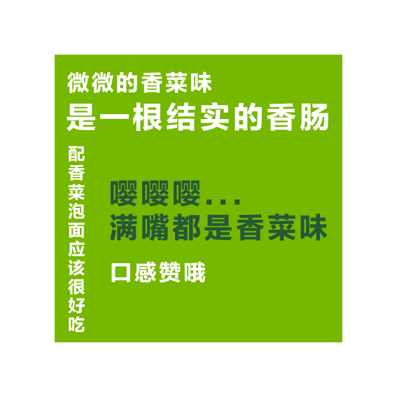 柠檬糖、香菜巧克力、香菜柠檬水、香菜百力滋、香菜薯条、香菜香肠、香菜干拌面