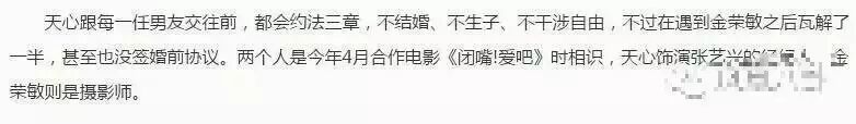 之前天心与每一任男友交往时都有一个“约法三章”,“不结婚,不生小孩,不干涉自由 ”。这次为爱打破戒律,天心表示是真的遇到了对的人。