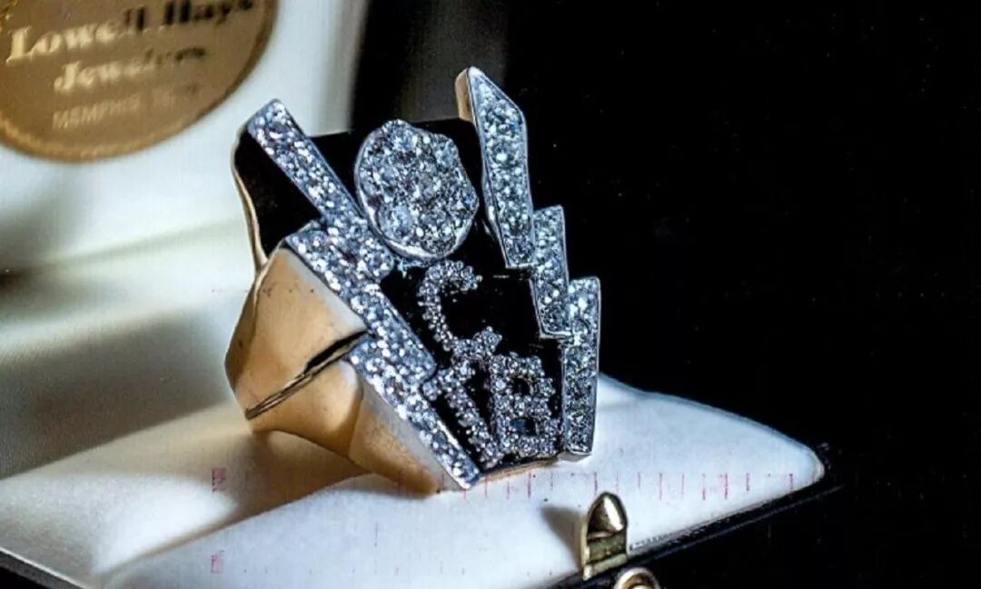关于这个风靡半个世纪的闪电妆还流传着一个说法,David Bowie 曾受猫王 Elvis 的影响,因此在 Ziggy Stardust 这个角色形成的时候,有部分元素也就基于 Elvis 的影响关系。对于这个闪电妆,传闻就是启发自 Elvis T.C.B. Logo 中的那道闪电(T.C.B. 是猫王的人生格言 – taking care of business ,这个 Logo 也被打造成各种猫王平时佩戴的珠宝)…