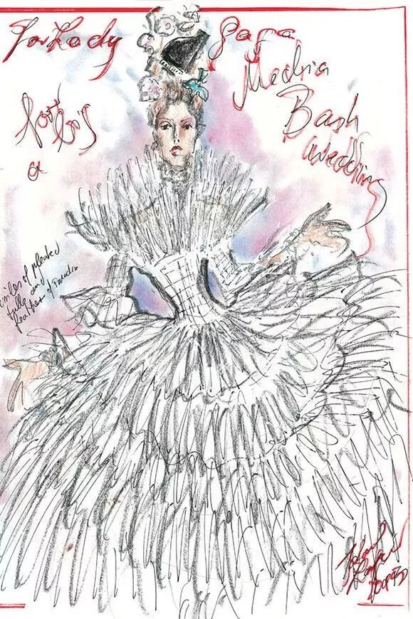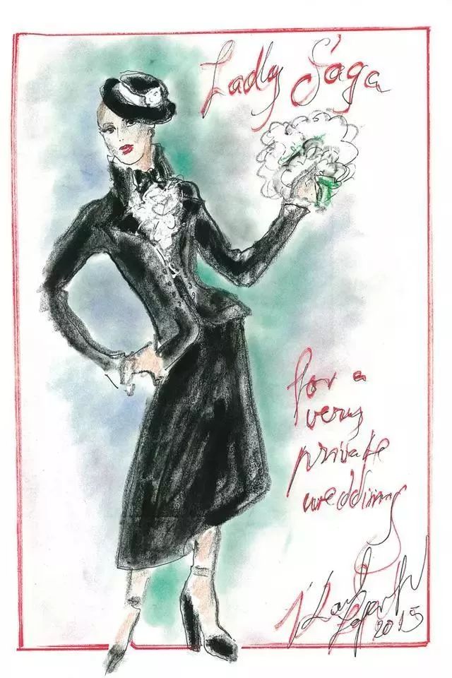 当然了,gaga自己也是时尚界的钢铁muse。当年一听说她要订婚,老佛爷立马给她手绘了两幅黑白婚纱草图。