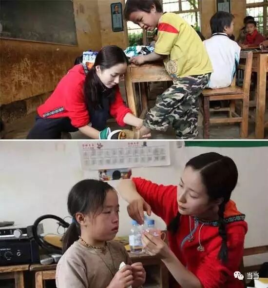 她曾在接受采访时说自己有洁癖。可当她和山区的孩子们在一起时,却仿佛忘了一切,细心体贴地照顾着他们的日常生活。