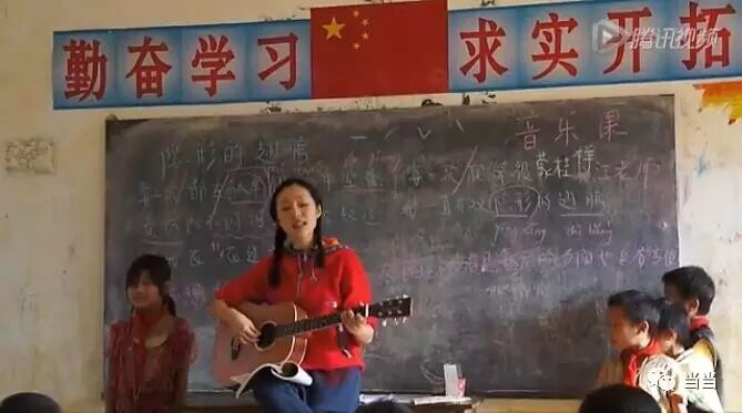 在大山里,她不施粉黛、素衣素颜,和留守的孩子们一起上课、游戏、洗漱、抱着吉他歌唱。