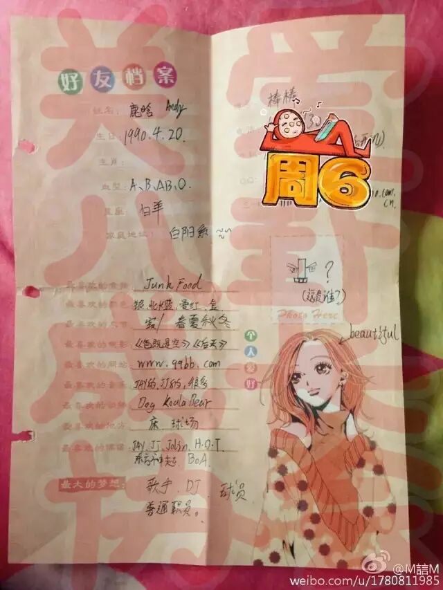 最近在我们微信上,有小老婆发来一张照片,爆料鹿晗读初中时最爱看的电影居然是《色即是空》!这张照片疑似是鹿晗读书时期写的同学录,为了考证其真实性,我们仔细研究了下,发现其中的生日、星座信息跟度娘百科上的完全吻合啊!最喜欢的电影居然是《色即是空》!我绝对没看过!我压根不知道这是一部韩国情色电影!最后我想说的是,如果这是鹿晗粉丝的恶作剧,请坦白从宽!这个锅我不背!