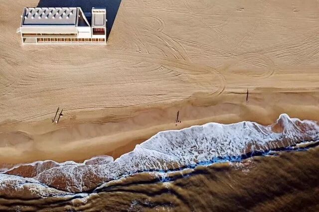 海的辽阔,会成为此次“虚无”最迷人的背景。沙滩不再白的发亮,而是深沉的金黄;海浪声不再热烈欢愉,更像是低音贝斯。阿那亚的海变成黛蓝,海浪涌来又退去,裹挟着强大的生命力。它静默无声,千千心结都会被收纳。